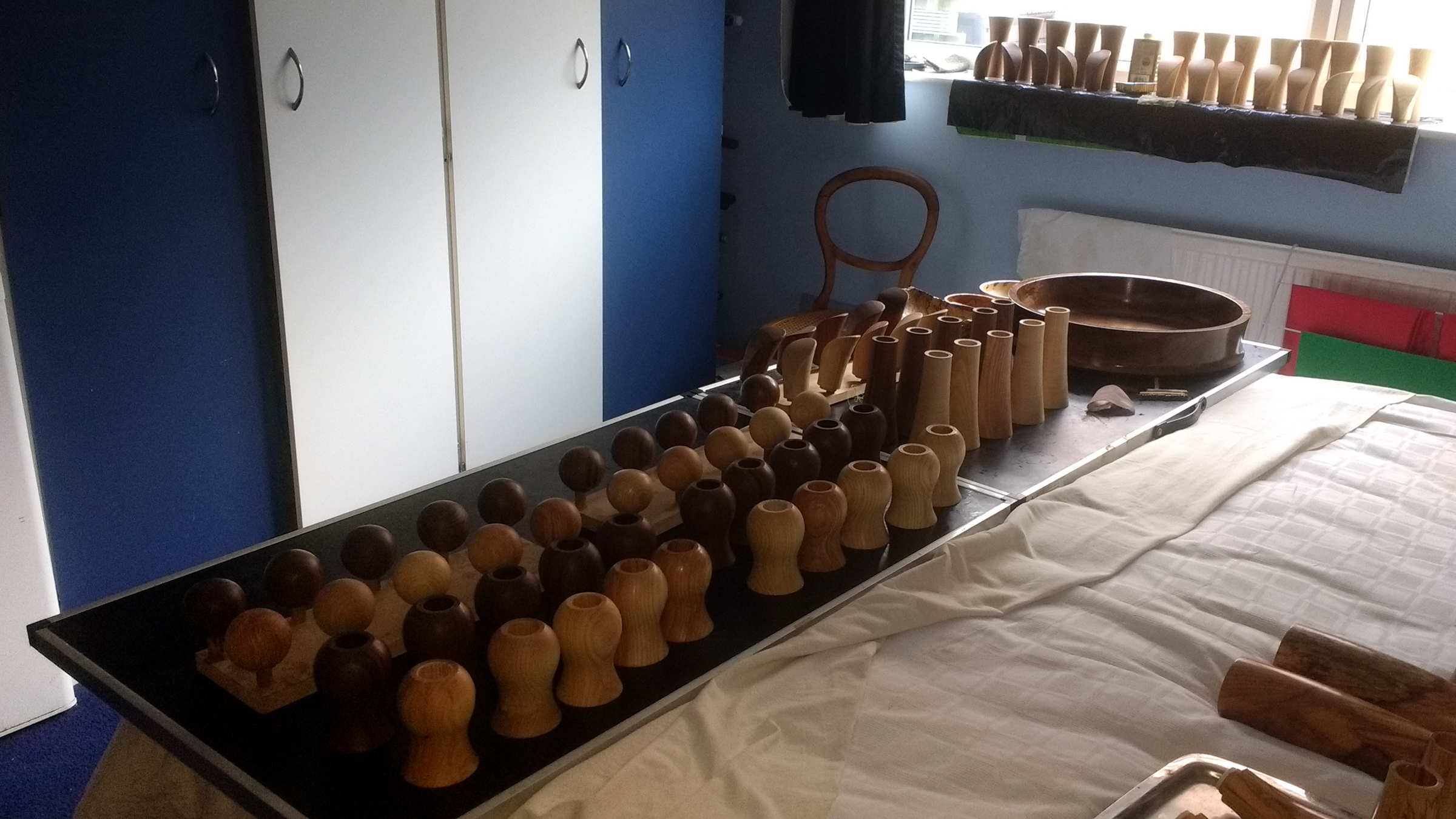 Finally feel I’m making some progress in respect of getting ready for my first fair of 2017.  After the busyness of the Christmas markets, my first fair seemed very remote and I probably dragged my heels a bit in terms of time at the lathe.  Two trips up north to see our new granddaughter probably didn’t help – but I wouldn’t have missed those for anything. Then I suddenly realised how close it really was and have been panicking over recent weeks, burying myself deep in shavings. But I’m now beginning to see the wood for the trees, if you’ll pardon the pun.  Still can’t afford to slow down much, but there is an end in sight, with the fair less than two weeks away,