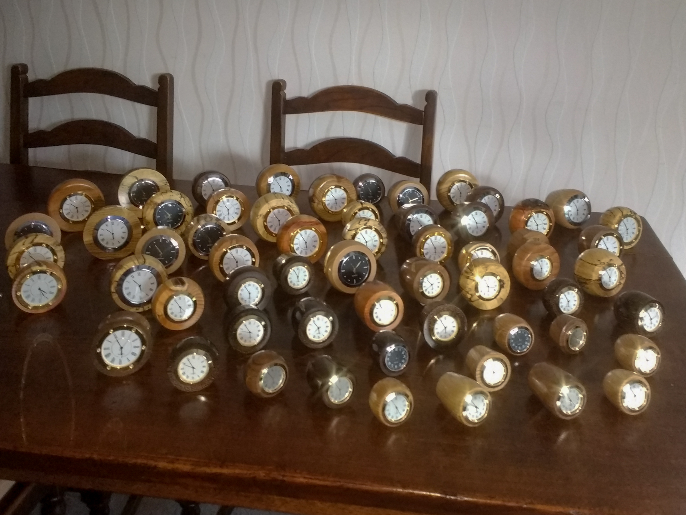 Less than a week to go to my first fair of the year – and probably the biggest, too.  I’ve burned a lot of the midnight oil making sure that I have enough stock and this little lot were finished last week (been too focused on making more items to post them on here).  I’m currently making some bigger clocks and some ballpoint pens, most of which will be finished today. Then it’s some fountain opens and rollerballs, plus some bottle stoppers.